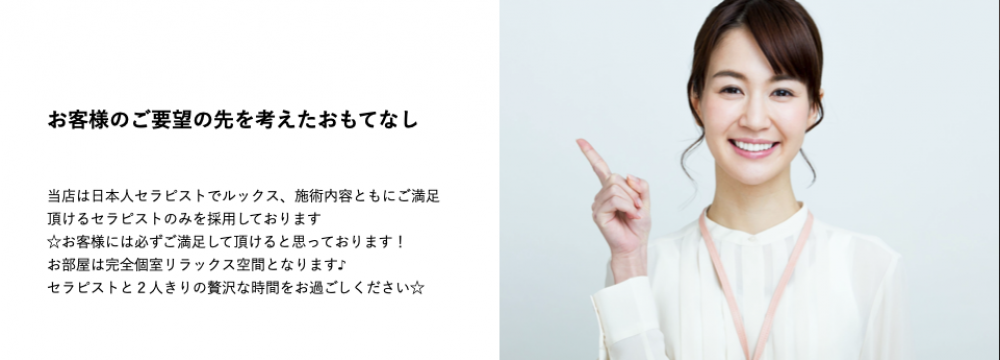 当店は日本人セラピストでルックス、施術内容ともにご満足頂けるセラピストのみを採用しております。