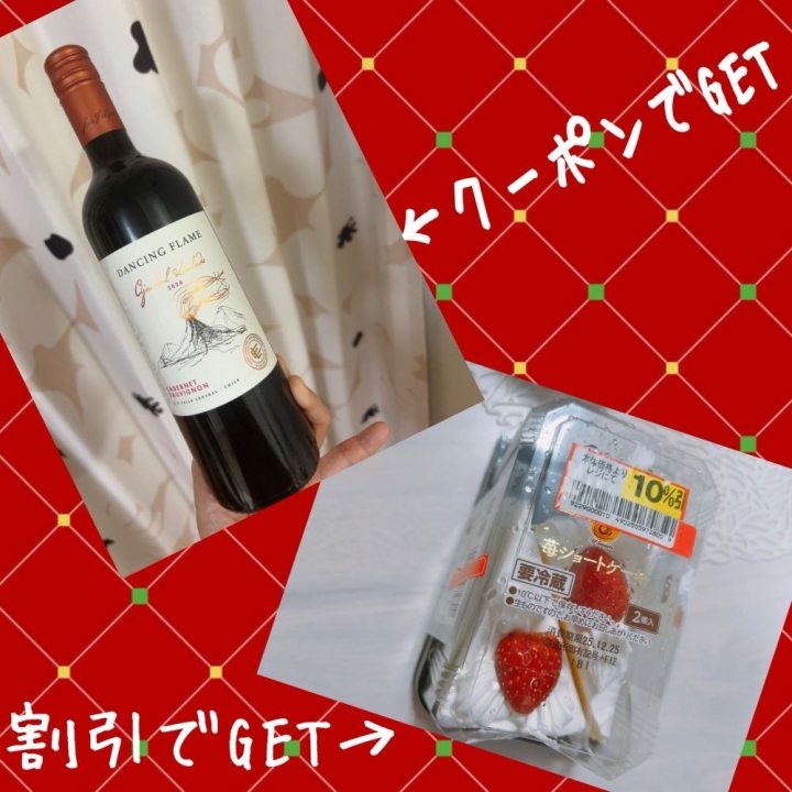 ぼっちだけど、クーポンでワイン貰えたので🍷割引で2日分のショートケーキ買って🍰そんなのを地味に楽しみます🤭