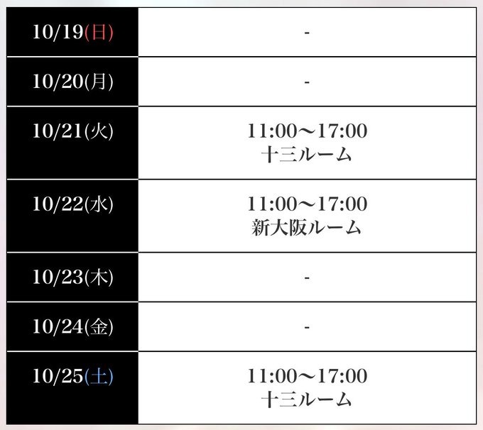 週間スケジュールが出ましたのでお知らせいたします💕