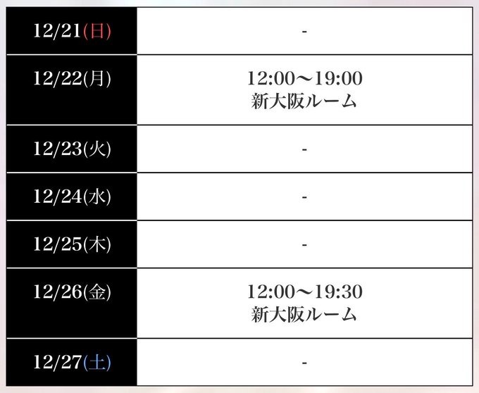 明日は新大阪ルームに12-19で居ます😄