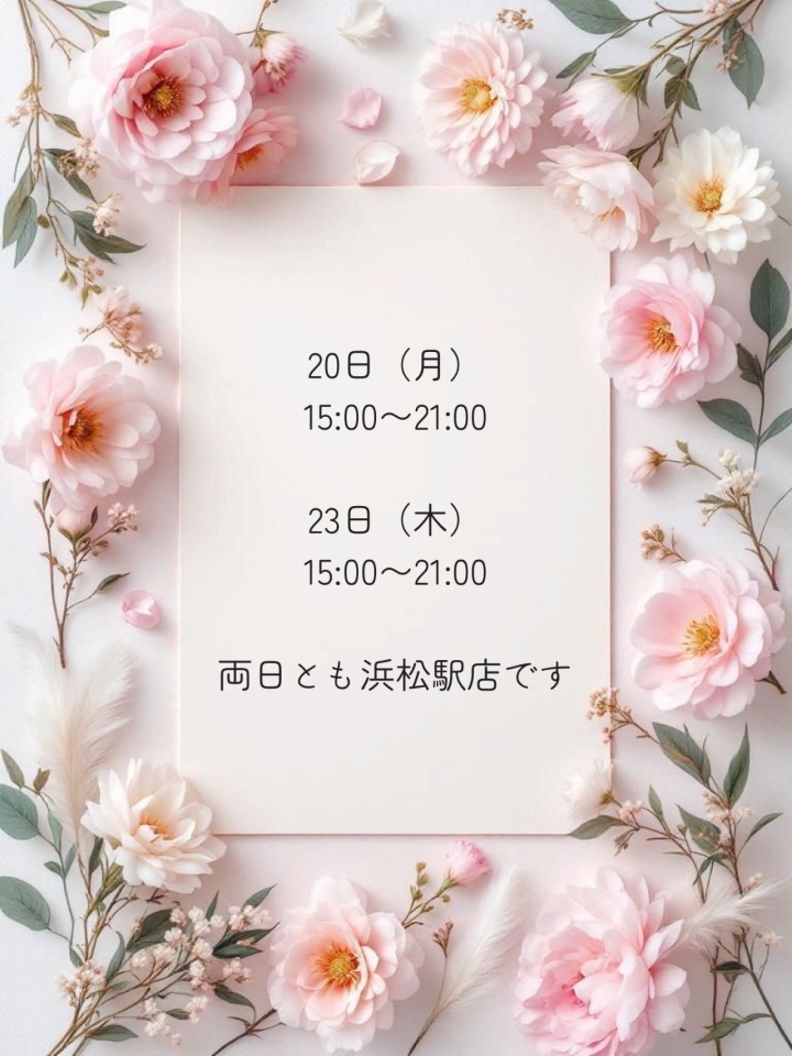 今週の浜松出勤についてご案内🪧🫧