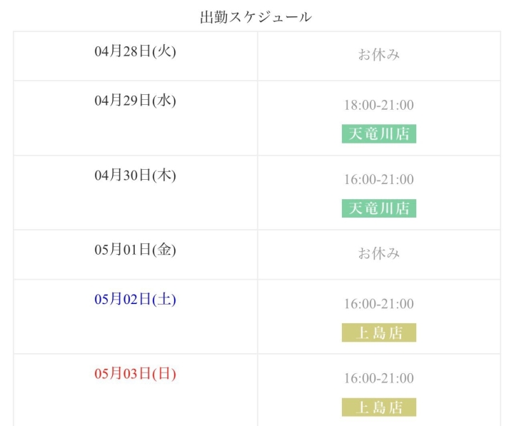 新人入店情報