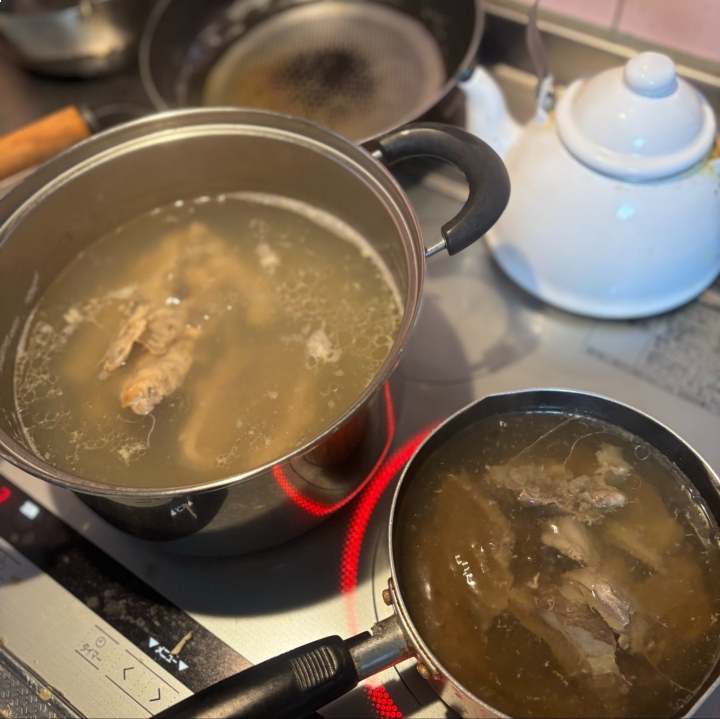 4時前に帰って…朝から鶏ガラと牛スジをしつこく煮込む🥘