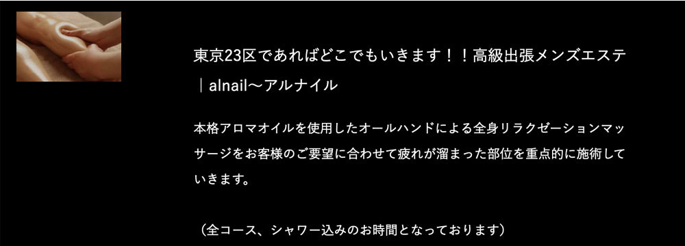 本格アロマオイルを使用したオールハンドによる全身リラクゼーションマッサージをお客様のご要望に合わせて疲れが溜まった部位を重点的に施術していきます。